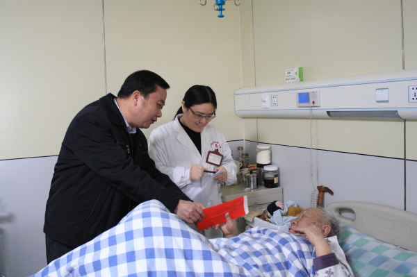 2016年1月26日上午,在新春佳节到来之际,自治区党委老干部局办公室主任廖华武一行3人代表自治区党委、自治区人民政府到我院开展春节慰问住院离休干部活动。我院副院长韦思尊热情接待,医院干部保健科、医务部负责同志全程陪同慰问。
