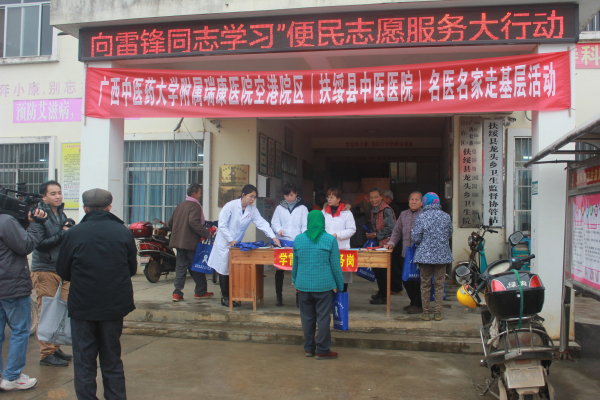 为传承雷锋精神,更好地为广大基层群众提供医疗服务,2016年3月17日上午,广西中医药大学附属瑞康医院空港院区(扶绥县中医医院)副院长黄适带领由脾胃病科、骨脊柱科专家组成的医疗队走进扶绥县龙头乡卫生院,开展 “中医名医名家走基层行动”。