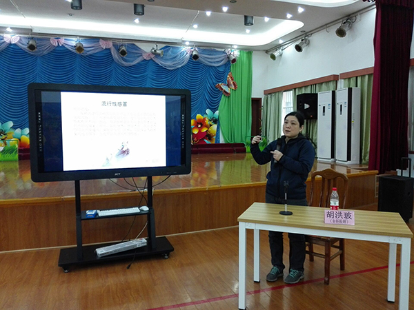 我院儿科副主任胡洪玻主任医师给大家先后讲述了对儿童手足口病、风疹、麻疹、流感、腮腺炎的防治;在呼吸道传染病的高发季节如何做好自我防护;在日常生活中,如何养成健康的生活和饮食习惯等内容。讲座生动、贴近生活,得到了广大学生家长的积极响应,纷纷发言向专家咨询疑问。