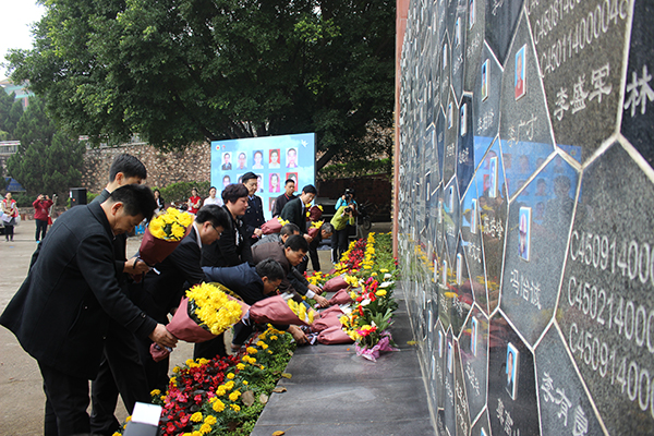 向纪念墙敬献鲜花