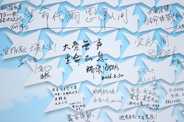 随后,全体参加仪式人员纷纷向镌刻着捐献者名字的纪念墙敬献鲜花,并在“心愿墙”上留言,写下对捐献者的敬意和对家属的诚挚祝福。