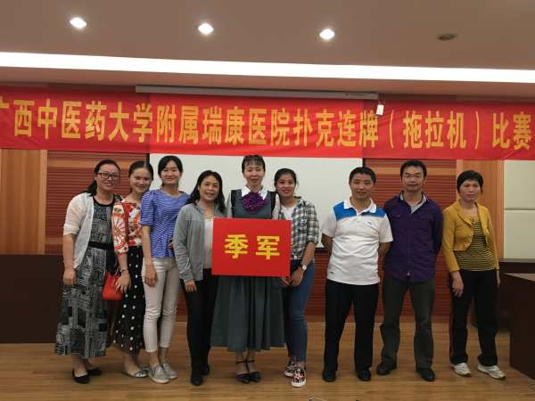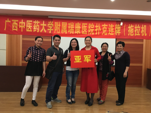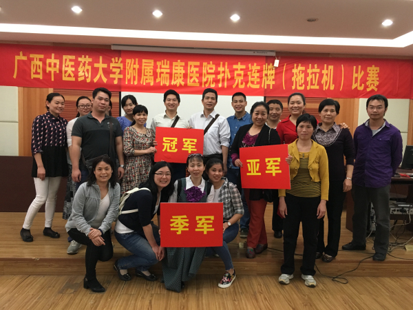 比赛中,选手们发挥出良好的竞技水平和体育精神,他们在赛场上默契配合、认真思考,既交流牌技,又增进友谊,比赛取得良好的效果。经过初赛、复赛、决赛三轮“惨烈厮杀”,最终,骨脊柱科2区第一代表队蝉联冠军,重症医学科1区二分队、门诊办代表队获亚军,重症医学科2区、弘中健康中心、南城分院代表队获季军。