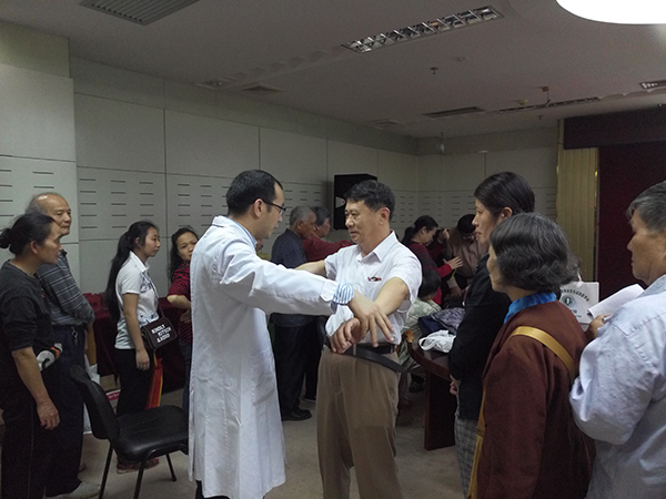 在本期活动中,骨关节与运动医学科李书振常务副主任、苏波副主任、朱江龙副主任医师、韩杰主治医师及丰新建住院医师等就如何正确认识肩周炎、肩膀痛≠肩周炎、肩痛患者的自我评估、肩痛患者怎样正确进行功能锻炼等内容进行了授课。课后骨关节与运动医学科医师团队还为肩痛患者进行了义诊及咨询答疑活动。
