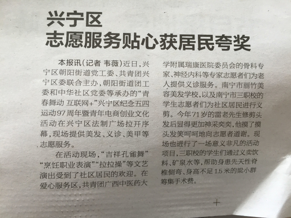 南宁晚报5月2号第七版报道本次活动