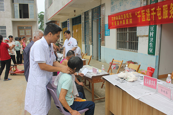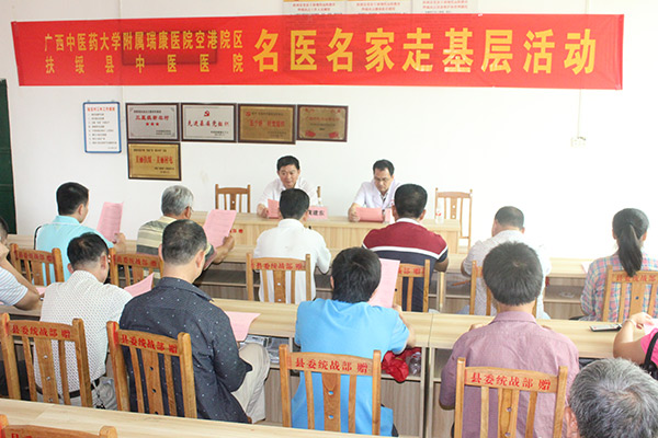 为落实《崇左市实施广西中医名医名家走基层行动计划(2015-2016年)工作方案》及崇左市卫计委“千医进千屯服务万家”等三项活动的工作要求,我院空港院区于5月12日上午到扶绥县岜盆乡姑豆村开展中医名医名家走基层活动,活动分为乡村医生中医药知识培训和义诊两部分。