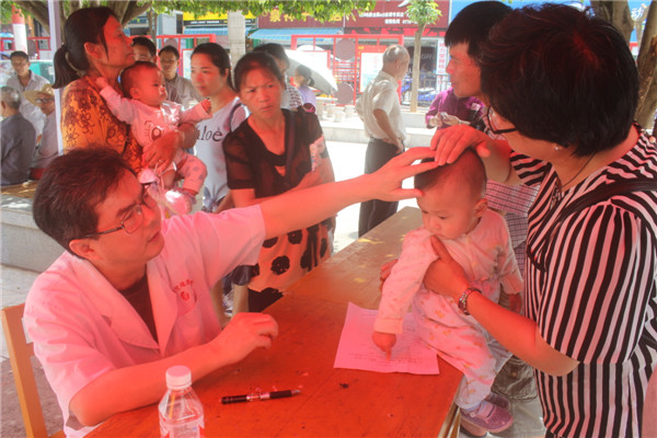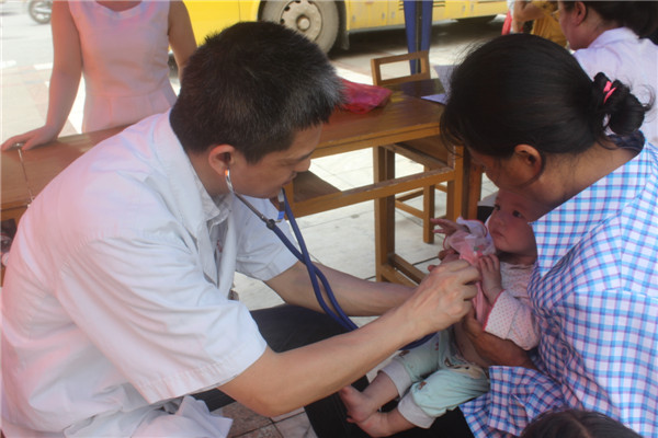 我院儿科主任梁文旺为小朋友诊查