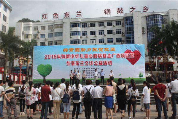 5月31日,由广西青少年发展青基会、共青团河池市委员会和广西中医药大学附属瑞康医院共同主办的2016年如新中华儿童心脏病基金慈善救助广西项目在河池市东兰县正式启动。我院副院长高宏君、广西青少年发展基金会副秘书长苏瑜、共青团河池市委副书记张秋文、东兰县有关部门领导出席项目启动仪式,50多名先天性心脏病患儿也在家长的陪伴下参加了活动。我院先心病患儿救治专家团队举行的先天性心脏病筛查义诊活动也同期开展。