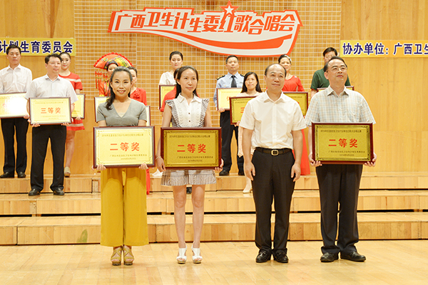 6月23日晚上,在广西音乐厅里,旋律激昂,歌声飞扬,“庆祝建党95周年暨红军长征胜利80周年——广西卫生计生委红歌合唱比赛”在这里隆重举行。我院合唱队凭借扎实的演唱功底和稳定的水平发挥赢得了全体专家评委的一致肯定,并荣获二等奖。我院副院长黄国东、高宏君参加了比赛,党委副书记陈日兰代表医院上台领奖。