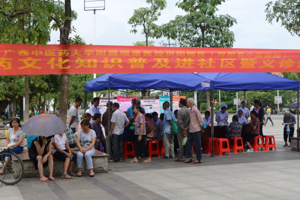 2016年7月15日,我院田阳院区在田阳县布洛陀文化广场举办“中医药文化知识普及进社区及义诊”活动。参加本次义诊活动的有院长龙驹、党支部书记甘照儒、副院长农田泉及各科室骨干医师等15名医务人员,在大家的共同努力下,义诊取得圆满成功。