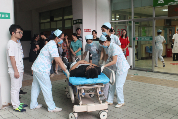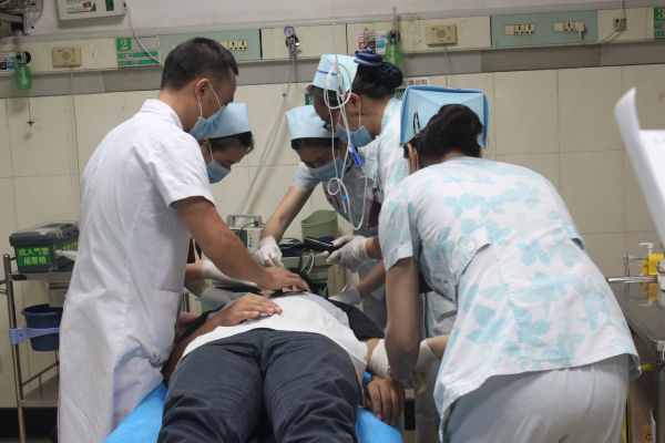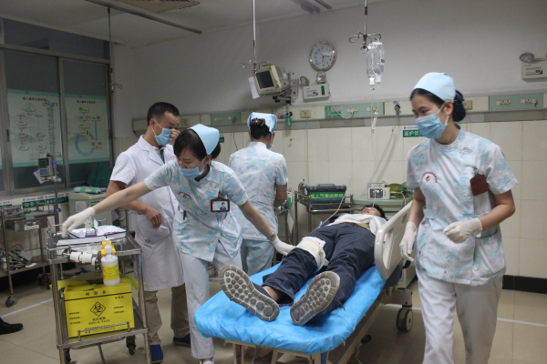 为提高我院医务人员急诊急救意识,强化医院院前、院内急诊应急能力,在紧急情况下,能做到调度有方,出诊及时,救治有力,措施得当,通过演练,增强应急处置队伍的指挥调度能力、反应和协作能力及急救信息的处置能力,从而规范各项医疗救援措施,锻炼应急队伍, 9月18日下午,我院急诊科举行了一次急救演练活动。