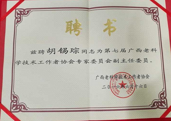 6月16日,第七届广西老科学技术工作者协会聘任我院原业务副院长、中西医结合研究所原所长、神经外科教授、主任医师胡锡琮为广西老科协专家委员会副主任委员,任期5年。胡教授为我院被任命为该职务的第一人。