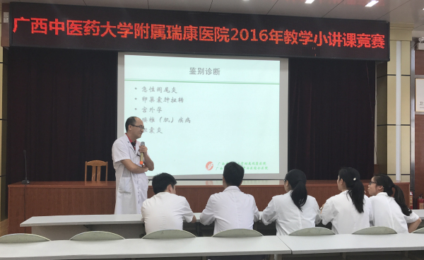 为进一步深化我院临床实践教学改革,加强师资队伍素质建设,我院于10月5日至10月7日举行了2016年临床教学小讲课竞赛。全院承担医学类实习生教学任务的32个临床科室选派优秀教师参与本次竞赛。医院领导亲临比赛现场进行指导,各科室积极组织本科室教师及实习生、研究生、规培生到场观摩。