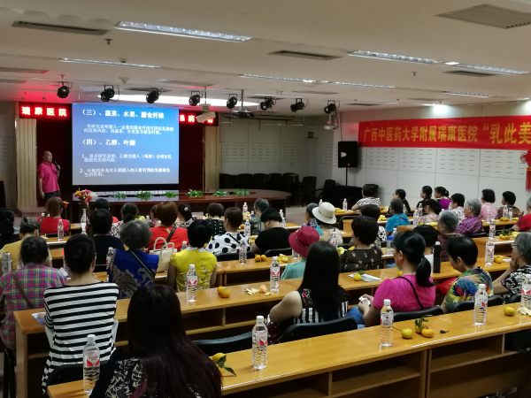 本次病友会邀请广西医科大学附属肿瘤医院营养科主任刘建勇教授和我院乳腺病科主任吕丽琼博士作健康讲座。刘建勇教授指导大家在日常饮食中如何防癌抗癌,同时还为乳腺癌病友康复治疗做了指导。