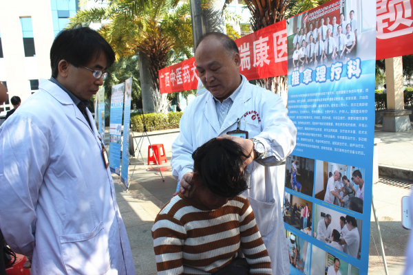 11月23下午,梧州市卫生计生委副主任李论一行来到我院,与我院签订新农合跨市异地“一站式”即时结报协议。12月7日,作为梧州市在南宁唯一新农合跨市“一站式”即时结报试点单位,我院医疗服务部组织医院神经内科、心胸外科、肿瘤科、推拿理疗科、皮肤性病科等科室专家前往藤县人民医院,参加梧州市新农合跨市“一站式”即时结报新闻发布会,开展专题义诊活动、教学查房活动及学术讲座活动,助力梧州市新农合跨市“一站式”即时结报工作宣传,把省级三甲医院优质的医疗服务、先进医疗技术带给基层群众及医务工作者,推进优质医疗资源下沉基层的同时,普及新农合跨市“一站式”即时结报的各项政策。
