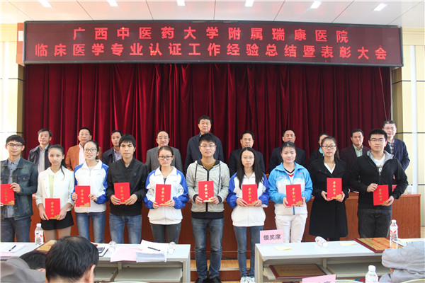 会议期间,陈日兰副书记宣读了《广西中医药大学附属瑞康医院关于表彰临床医学专业认证工作先进集体和个人的决定》文件,对我院在临床医学专业认证工作突出贡献团队(10个)、临床医学专业认证先进集体(10个)、临床医学专业认证学生先进集体(6个)及临床医学专业认证学生先进个人(103人)进行了表彰,会议还进行了临床医学专业认证工作经验交流。