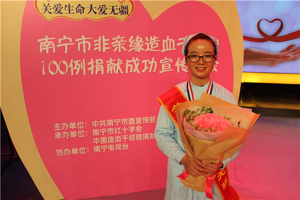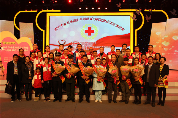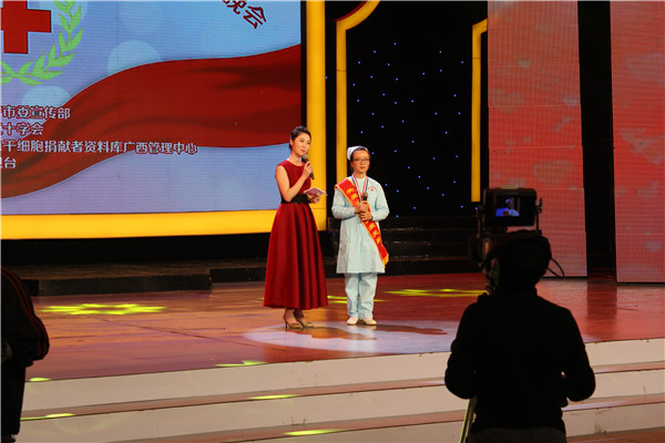 12月28日晚,由中共南宁市委宣传部主办,南宁市红十字会和中国造血干细胞捐献者资料库广西管理中心承办的南宁市造血干细胞100例捐献成功宣传晚会在南宁电视台录制。我院关节与运动医学科护士蓝芸作为南宁市第100例造血干细胞捐献成功志愿者参加晚会录制。