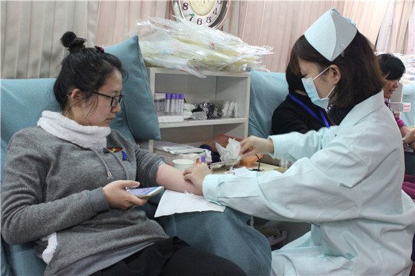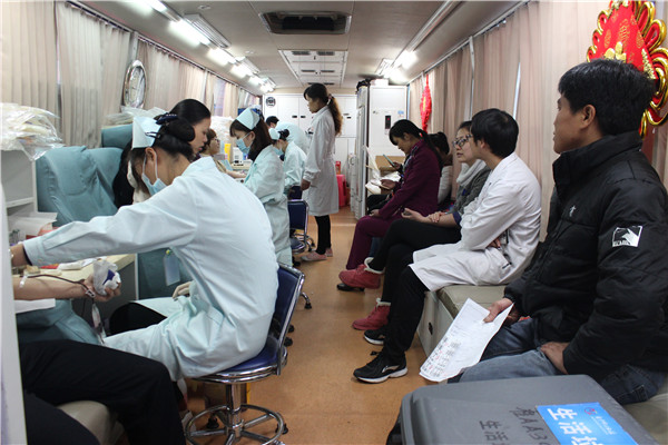 血量有限,爱心无限。2017年1月19日上午,腊月寒冬,持续阴雨天的南宁格外湿冷,温度虽然低,但是停驻在我院A座大楼前的流动献血车里却热血沸腾。为了确保春节期间各医疗机构临床用血需要和安全,我院积极响应号召,组织干部职工开展无偿献血活动。全院职工、实习生和进修生纷纷积极参与,为缓解南宁市血源紧张做出表率,为社会献一份爱心、尽一份责任。据统计,当天共有130名人员参加了献血,献血量达31900毫升。