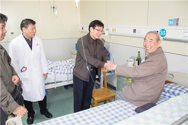 2017年春节前夕,自治区党委组织部老干部局关心下一代工作委员会办公室主任梁世友、区卫计委领导一行于1月23日上午到我院亲切慰问正在我院住院治疗的离休老干部、省级老领导,为他们送去党和政府的关怀与温暖,并致以节日的问候和新春祝福。我院干部保健科相关人员陪同。