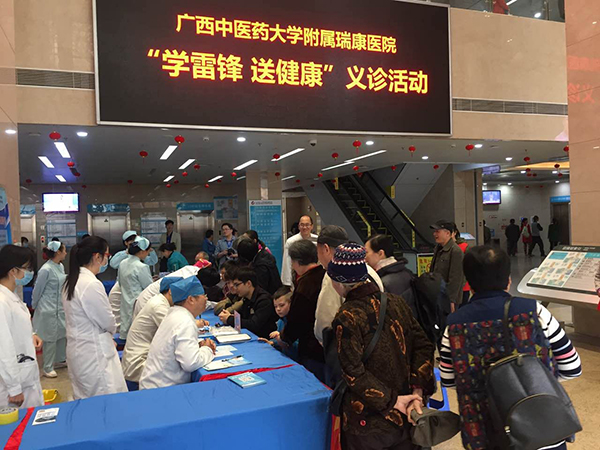 为弘扬雷锋精神,践行“奉献、友爱、互助、进步”志愿精神,营造医院“讲奉献,有作为——做合格党员”的服务氛围,3月3日上午,我院团委和医疗服务部组织消化内科、神经内科、器官移植泌尿外科、耳鼻咽喉头颈外科、弘中健康中心等青年文明号集体医护专家和学生志愿者在A座一楼大厅开展“学雷锋 送健康”大型义诊活动。