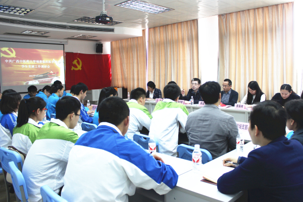 3月14日下午,瑞康临床医学院在学校明秀校区会展中心展六教室召开学生党建工作调研会。瑞康临床医学院党委书记高宏君,党委副书记、纪委书记黄建民出席会议并讲话,教务学生党总支书记王瑜,教务学生党总支副书记秦明芳,宣传部副主任陆畅,团委副书记黄雁南列席,瑞康临床医学院5个学生支部、2个实习生支部、1个规培生支部的24名党员代表参加会议。会议由教务学生党总支秦明芳副书记主持。