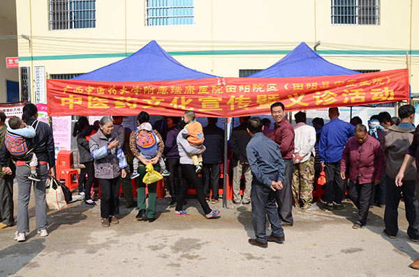 当天,由田阳院区龙驹院长带队,由内科、外科、骨伤科、妇产科、针灸推拿科组成的义诊专家团队早早来到洞靖镇卫生院。义诊桌位还没摆好,周围就围满了前来咨询的民众,还不时地询问,义诊活动什么时候开始。家住洞靖镇的李阿姨常年有腹痛、嗳气、恶心、便血等症状,给日常生产生活造成严重不便,田阳院区内科马珍妮医生在听完患者的叙述后,细心地给李阿姨分析原因,并叮嘱其在日常生活中需要注意的事项,同时还建议李阿姨有时间做个胃肠镜检查,查出病因,才能更好地治疗。医生们对每位来咨询问诊的群众都给予耐心、细致的解答,并积极宣传防治结核病的知识。