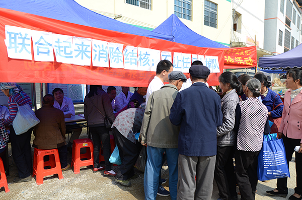 在世界防治结核病日到来之际,3月23日上午,伴随着和煦的春风,我院田阳院区走进洞靖镇,与洞靖镇卫生院携手宣传防治结核病的健康知识,并为当地百姓进行免费义诊活动。