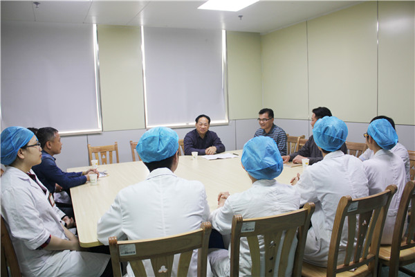 罗副校长一到实训基地,看到同学们在老师的带领下紧张备战,他不忍打扰,直到大家完成了项目练习后他才上前与大家亲切交谈,并进行了点评。在随后的座谈会上,罗伟生副校长首先对此次备战全国高等医学院校大学生临床技能竞赛付出辛勤劳动与汗水的全体老师和学生表示由衷的感谢,并积极肯定了我院为此次竞赛的准备和投入,相信凭借瑞康医院最好的选手和指导教师、最好的组织和指导工作,一定能取得最好的成绩。他还嘱咐选手在比赛中要注意审题、冷静自信,保持处变不惊的气度,要有必胜的信心,狭路相逢勇者胜,并预祝参赛队能一举夺魁。同时他指出:一、通过全校师生的共同努力,万众一心、众志成城,去年10月,我校临床医学专业认证取得了优异成绩。希望大家继续发挥认证工作中的拼搏精神、不断进取,争取取得更好的成绩。这不仅是每一位竞赛选手的重要目标,也是广西中医药大学全体师生的共同期望;二、良好的心态是成功的一半,一定要有坚定的信心,要充满自信面对此次竞赛;三、勤学苦练是成功的必要条件,不仅在这次比赛中,在以后的人生道路中也要有这样的奋斗精神。勤劳、勤学、勤问,才能成就人生,实现跨越,再创辉煌!