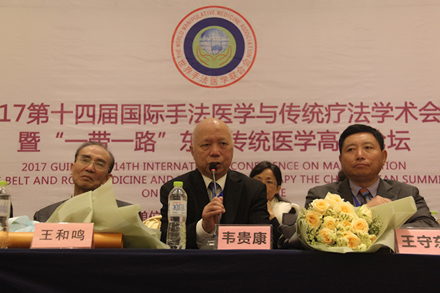 开幕式上世界手法医学联合会主席韦贵康教授为本次大会致辞,他对传统医学及现代医学进行了分析,对互联网技术与医疗相结合做出了展望,表示在国际大健康产业迅速兴起与现代高科技迅速发展的时代,我们将以此为契机推动健康产业更好更快地发展,以造福世界更多人民,做出新的更大的贡献。桂林市委常委、副市长何翔为本次大会致辞,他首先向不辞辛劳、远道而来出席本次会议的各位专家、代表、来宾表示热烈的欢迎,他表示本次学术会议暨高峰论坛是一次业界交流和成果展示的盛会,同时将为桂林在中医药复兴发展、养生养老、健康旅游产业发展方面提供一个很好的平台,希望借助这样的平台,进一步加快桂林市相关产业的发展。
