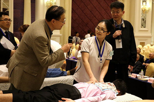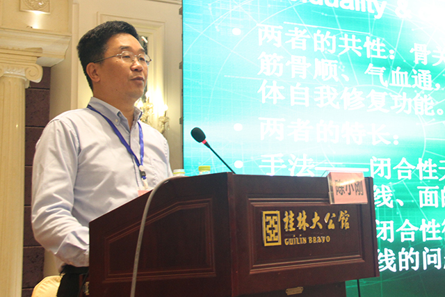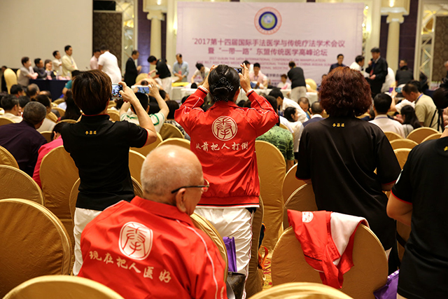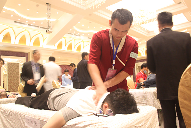 会议主要分为学术专题报告、诊疗技术表演、医疗保健美容产品展销等7项内容。在13、14号两天的时间里,专家学者们就各自研究的领域进行了交流及展示。其中,韦贵康教授就“八桂韦氏骨伤流派的形成与多元性手法研究”进行了交流与分享,博得了听众的阵阵掌声。中国中医科学院望京医院院长朱立国教授阐述了“建立一种中医手法研究思路及进展”的研究。他通过借助传感设备、力学分析、建立模型等建立对中医手法的评价及考核标准。思路条理清晰,说服力强,赢得了大家的一致好评。学术分享主要针对脊柱相关疾病诊疗为中心,结合现代医学与传统疗法展开,涵盖流派传承、正骨、康复与特色民间疗法,使场下观众大开眼界。