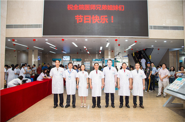 6月26日上午,我院在A座一楼大厅开展医师节庆祝活动。医院院长唐友明,党委书记高宏君,党委副书记、副院长陈日兰,副院长庞刚、韦思尊,党委副书记、纪委书记黄建民,副院长陈锋及各科医生代表参加活动。