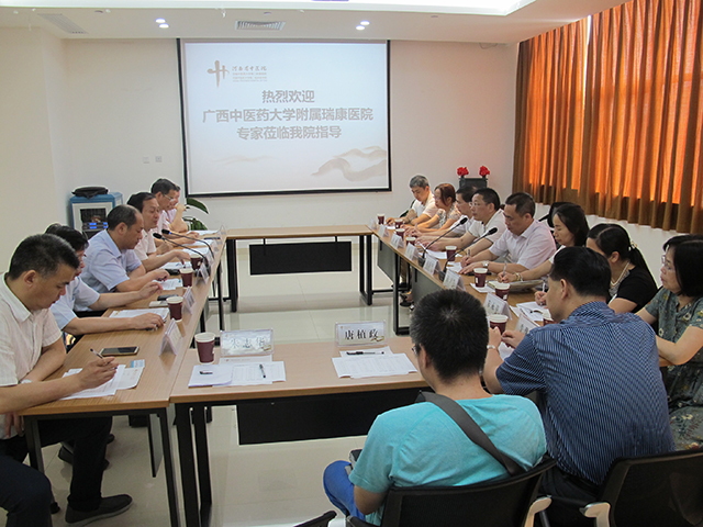 在与河南中医药大学以及各医院的交流中,唐友明院长也介绍了我院的发展情况,医院文化以及医院中医做特做优,西医做强做精,坚持“中西医并重”的办院方针,并指出医院中医文化传承和特色建设的重要性,要博众家之长,做出特色,做出品牌。