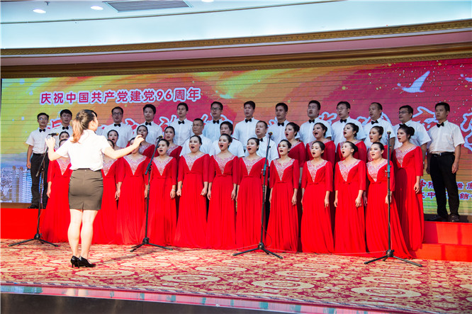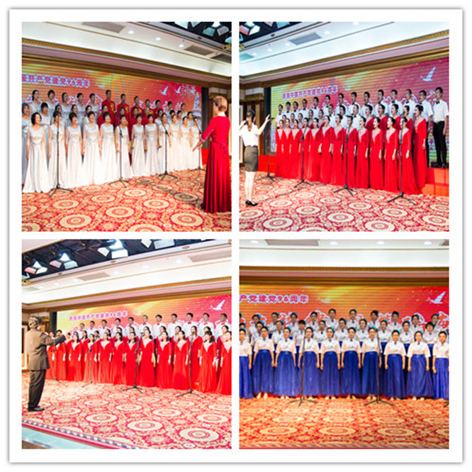 “我爱祖国的蓝天,晴空万里阳光灿烂,白云为我铺大道,东风送我飞向前.......”一首《我爱祖国的蓝天》拉开了当晚红歌比赛的帷幕,歌声嘹亮,洋溢着节日的喜庆气氛。随后,医院各党支部党员干部组成合唱方队,分别演唱了《保卫黄河》、《唱支山歌给党听》、《共和国之恋》、《在太行山上》等经典红色歌曲,演唱各具特色,一次次精彩的表演将现场气氛推向高潮。真切表达了医院广大干部职工弘扬和践行社会主义核心价值观,充分展示在党的领导下,人民卫生事业发生的巨大变化和取得的丰硕成果,生动反映瑞康人爱岗敬业、开拓创新的精神风貌,凝聚力量,鼓舞信心,抒发了医院党员干部的激动之情。