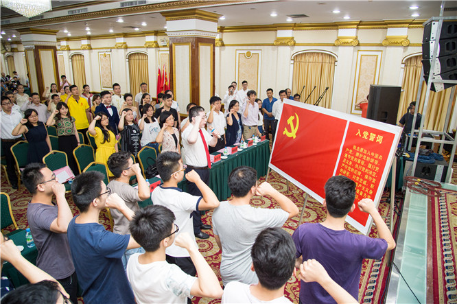 根据会议议程,高宏君书记作为领誓人带领新、老党员及与会所有党员举起右拳,在鲜红的党旗前,庄严宣誓。新党员入党宣誓,激励新党员严格要求自己,牢记入党誓词,增强入党的神圣感和使命感;老党员重温入党誓词,进一步坚定了共产主义信念。