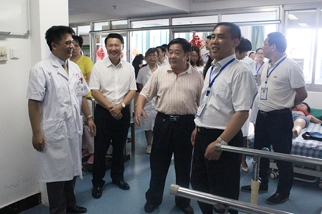 6月30日下午,由自治区人大常委会副主任荣仕星,自治区人大常委委员、区人大教科文卫委副主任委员凌志勇,自治区人大常委会委员周卓新,自治区发改委副主任韩庆东等领导组成的自治区人大常委会医药卫生体制改革专题调研组莅临我院,就我院医改政策落实情况进行调研。广西中医药大学副校长庞宇舟,我院院长唐友明,党委副书记、副院长陈日兰,副院长庞刚、韦思尊,党委副书记、纪委书记黄建民陪同调研。