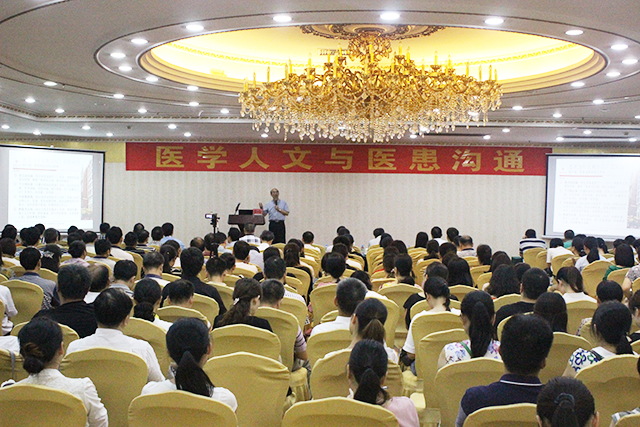 为加强医患沟通能力,营造和谐医患关系,7月7日下午,北京大学医学部王一方教授应邀在凤凰宾馆为我院医护人员做题为《医患人文沟通导论——沟通不仅仅是技巧,沟通是人格》的培训讲座,我院院长唐友明,党委副书记、副院长陈日兰,副院长庞刚、韦思尊,党委副书记、纪委书记黄建民出席讲座,全院中层干部代表、医护人员代表近400人聆听讲座。
