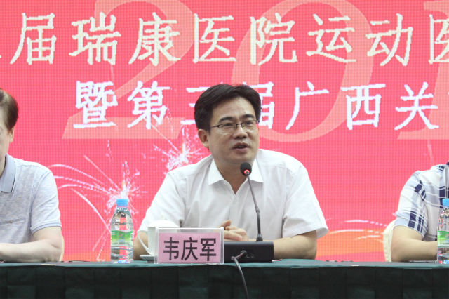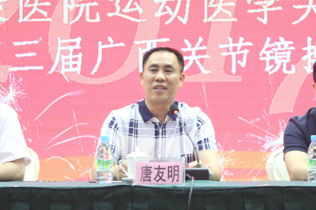 他指出,近年来医院高度重视骨科的发展,在人财物等方面给予了大力的支持,我院骨科也得到了区内外各位同道的支持与帮助,取得了比较大的进步,但还存在很多不足,我们将尽全力办好这次盛会,打造一个良好的学术交流平台,提高广西运动医疗的短板,接轨国际运动医学专业顶尖的诊疗技术,使医院的运动医学科建设迈上新台阶。希望大家能认真学习,认真交流,从思想上碰撞出火花,学有所获,学以致用,回到各自单位后,都能使本单位骨科的技术得到提高。