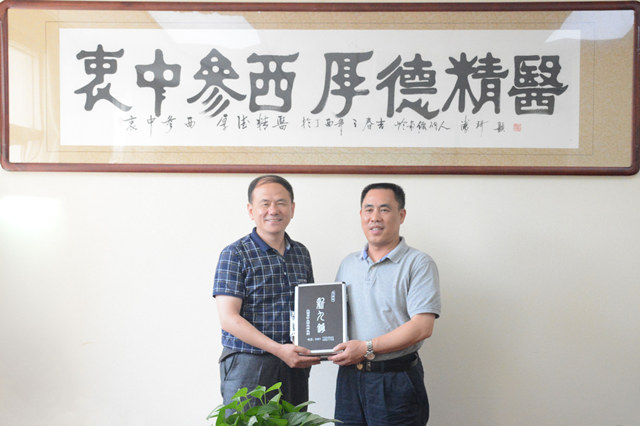 郝重耀副院长表示此行获益匪浅,得到了许多珍贵的经验。随后,他向我院院长唐友明赠送了山西中医学院第三中医院的纪念品,希望在未来两院能保持友好的关系,共促发展。