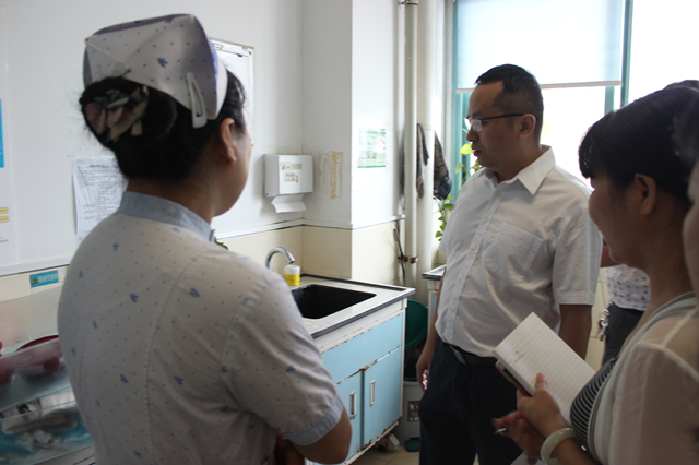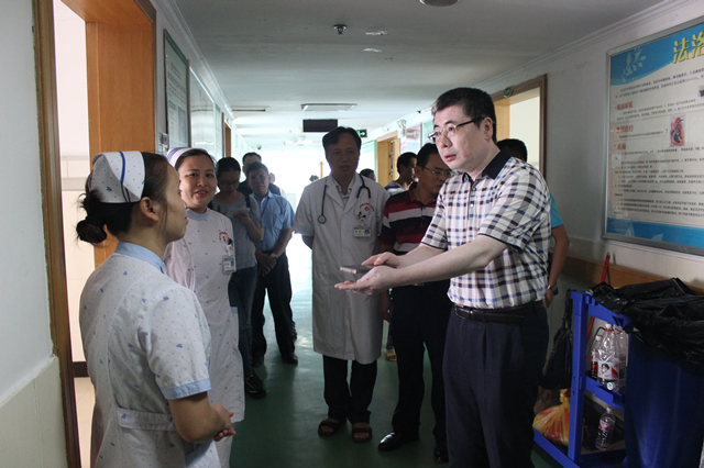 8月11日下午,我院进行2017年年中安全大检查,医院党委书记高宏君,党委副书记、纪委书记黄建民带领党委办公室、院长办公室、后勤部、医务部、护理部、医疗装备科、门诊部等相关部门负责人,深入临床一线,就卫生安全问题对全院开展大检查。