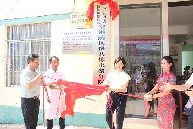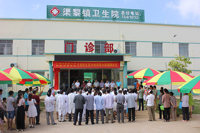 8月21日上午,空港院区医共体渠黎分院揭牌启动仪式暨大型义诊活动在渠黎镇卫生院举行,医院党委副书记、副院长陈日兰,空港院区督导龙学明,扶绥县委常委、宣传部部长、副县长陈英,扶绥县卫计局局长卢国坚,渠黎镇镇长刘权,空港院区全体领导班子,以及龙头、渠黎、山圩、岜盆、东罗五家卫生院负责人出席仪式,仪式由空港院区执行院长梁春才主持。