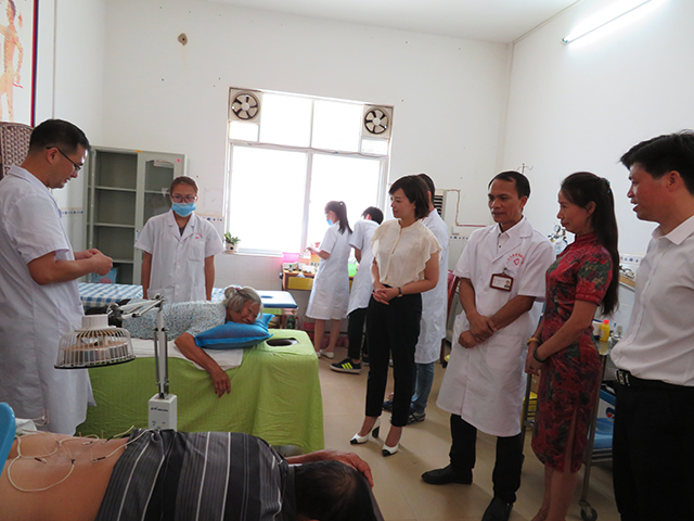 最后,参加仪式人员一起参观了空港院区渠黎分院,陈英部长在参观渠黎分院中医科时指出,空港院区要以广西中医药大学附属瑞康医院尖端医疗技术和优势中医药资源为依托,指导渠黎分院开展中医药新知识、新项目和新技术的培训,让基层医务人员熟悉和掌握中医药适宜技术知识更上了一个新台阶,增强基层中医优势病种诊疗能力和综合服务能力,提高基层医疗机构的中医药服务覆盖率,让中医药惠及更多基层百姓,让老百姓切切实实地享受到“简、便、验、廉”的中医药服务。