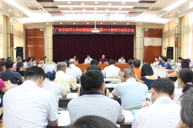2017年9月7日下午,在第33个教师节来临之际,医院召开了教师节庆祝大会,医院院长唐友明,党委书记高宏君,党委副书记、副院长陈日兰,副院长韦思尊出席会议,来自全院约60位教师代表参加。会议由党委书记高宏君主持。