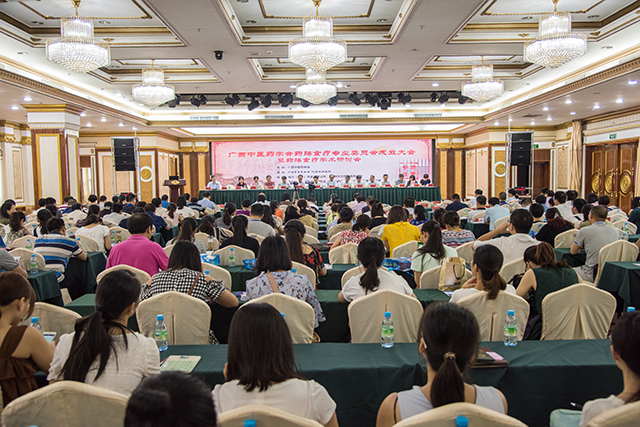 9月9日,由广西中医药学会主办,我院承办广西药膳食疗专业委员会成立大会暨药膳食疗学术研讨会在南宁凤凰宾馆成功举办。大会邀请到湖南中医药大学教授、世界中医药联合会药膳食疗研究专业委员会会长谭兴贵,世界中医联合会药膳食疗研究专业委员会秘书长、深圳宏元堂中医院院长陈宏斌等国内知名药膳食疗专家莅临参会。广西中医药大学副校长庞宇舟、自治区中医药管理局中医民族医医疗处副处长刘畅、广西中医药学会秘书长黄波夫、广西中西医结合学会秘书长李方、我院院长唐友明及区内各级医院领导出席会议,来自区内200多位药膳食疗专家及爱好者、医药工作者代表、中药和养生保健企业代表参加会议。