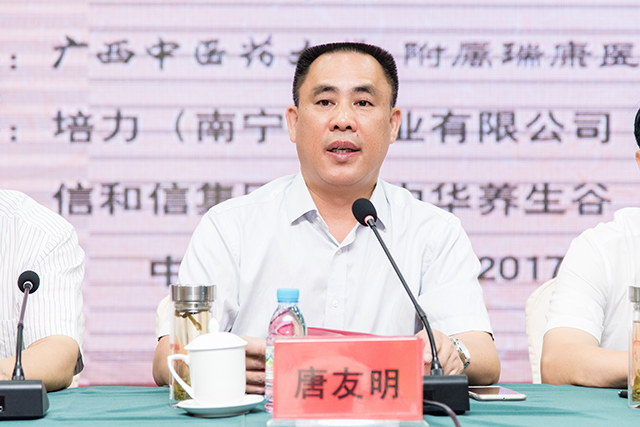 唐友明院长介绍了我院的基本情况,强调我院现代医学技术先进、中医药特色鲜明、中西医结合优势突出的医院定位和坚持中西医并重、坚持中西医两条腿走路、平衡协调快速发展的办院方向。唐院长指出,药膳食疗是祖国医学的瑰宝,具有很好的养生疗疾作用,是中医药学的重要组成部分,近年来,全国范围内的药膳食疗服务方兴未艾,广西药膳食疗专业委员会的成立为推动我区药膳食疗的发展和规范应用搭建了一个高水平的研究、学习、交流平台,希望通过这个平台开展药膳食疗理论和产品的研究开发,经验的学习交流,加速我区药膳食疗事业的发展。唐院长希望,各级医院领导能够重视药膳食疗工作,采取切实可行的措施,建立管理和运行机制、搭建平台、壮大队伍,扩大宣传,真正开展和推动药膳食疗事业做大做强。