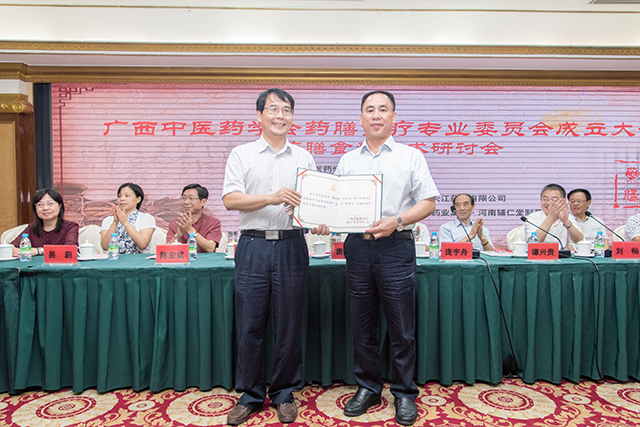 谭兴贵会长指出,中医药膳是在医食同源的带领下发展起来的一类特殊食品,既能给人们提供足够的食品营养,同时也具有食疗、食养、食补等多种作用,因此药膳一直是许多人用以改善身体健康状况、趋之若鹜的饮食追求。随着我国人民生活水平的日益提高,人们越来越关注如何通过饮食达到健康、长寿、益智、健美等目的。然而,药膳随着市场日益强烈的发展需求,其理论的研究和科学的探讨却一直处于落后的状态,期待广西中医药学会能全力振兴中医药膳事业,加快中医药膳食疗服务标准化,促进中医药膳食疗融入全区卫生保障体系,为构建健康中国和人们健康事业做出贡献。