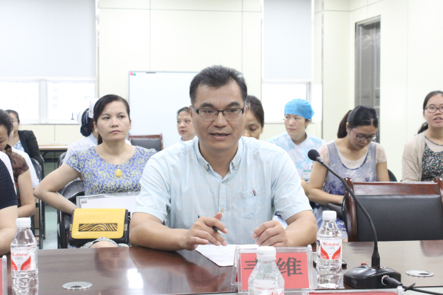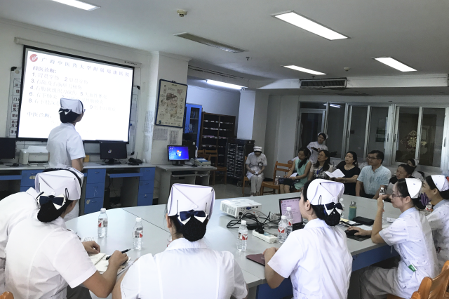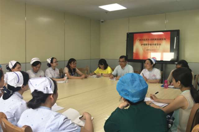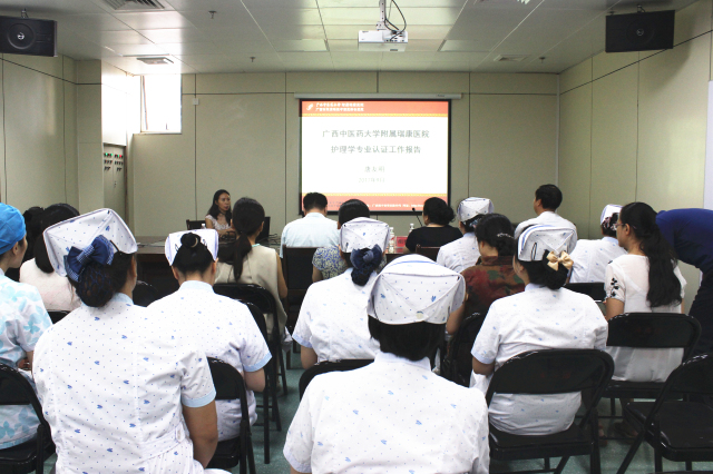 9月21日,广西中医药大学教务处副处长韦维、广西中医药大学护理学院副院长胡艳宁、学生科科长蓝红霞等专家组一行8人莅临我院进行了为期一天的护理学专业认证实践教学基地检查暨2018届护理学专业毕业生实习中期教学检查。医院党委副书记、副院长陈日兰,副院长陈锋,护理部主任龙秀红,护理教研室主任秦明芳、副主任钟美容、副主任蒋娟以及我院党政办公室、教务学生部、南棉社区等职能部门负责人以及部分护士长参加了会议。