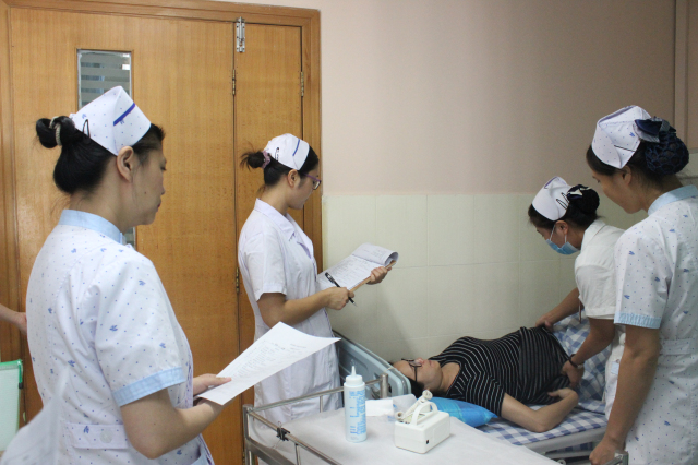 随后专家组到护理教研室查看了近几年临床教学的相关资料,包括医院临床护理教学组织规划与制度、临床教师资料、临床护理教学业务、临床教学质量管理、各种会议记录、实习生管理规定等;6位护理专家分成3个考核组分别到10个科室抽查了36个实习护生的基础护理和中医操作技能;参加了胃肠外科开展的一例腹部多发外伤患者的护理教学查房,考察了我院的带教能力和带教成果。最后专家组分别组织召开了教学秘书、带教老师座谈会和实习护生座谈会,对临床护理教学工作提出了宝贵的意见和建议。
