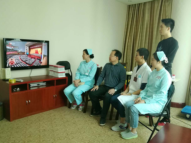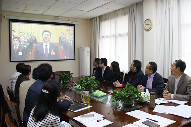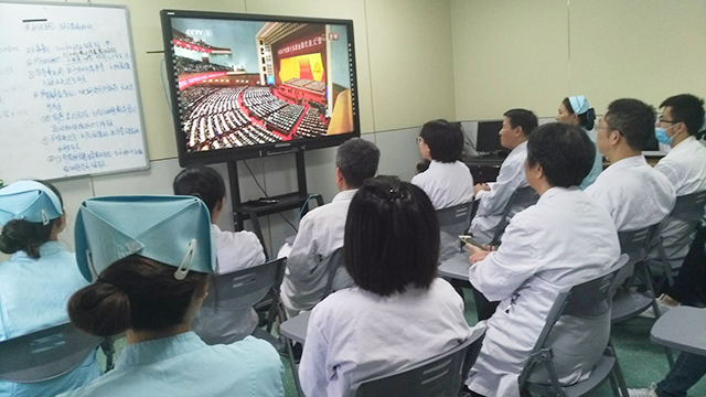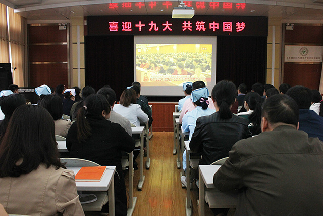我院党委积极组织医院领导班子成员、党支部书记代表、职工党员代表、学生党员代表、离退休党员代表等同志在第一会议室和十楼报告厅共同观看大会直播。医院其它党支部、党员、群众也都通过电视、网络、手机等形式关注大会盛况。
