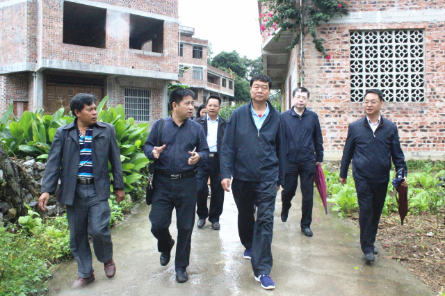 10月17日是扶贫日,广西中医药大学党委书记尤剑鹏率领学校组织部、财务处、附属瑞康医院等相关部门领导组成的慰问团前往隆安县都结乡念潭村,亲切看望我院选派驻该村“第一书记”范小明同志,与念潭村村支书李福彪等当地干部进行了座谈交流并实地查看了打井取水惠民工程、村文化广场(篮球场)建设、以及当前筹建的念潭村集体经济人畜分离扶贫项目。