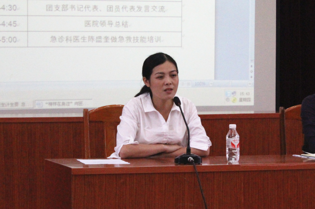 卢婷婷、佘志强、玉华等支部书记代表及团员代表发言,青年人应从自身做起,学习韦小红护士和陈盛奎医生立足岗位做奉献的先进事迹,拥有坚定的理想信念,用心学习,用心工作,学先进,作表率,立足岗位作奉献。