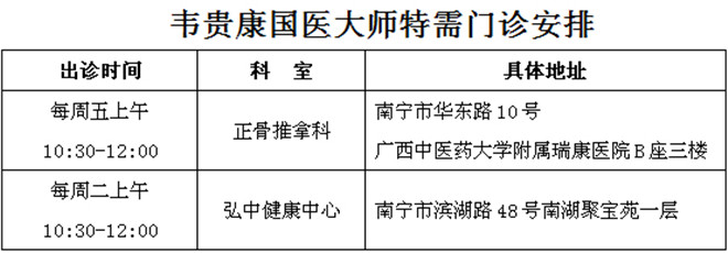 为了满足广大患者的就诊需求,自2017年10月27日起,国医大师韦贵康教授在我院特需门诊室接待患者就诊!